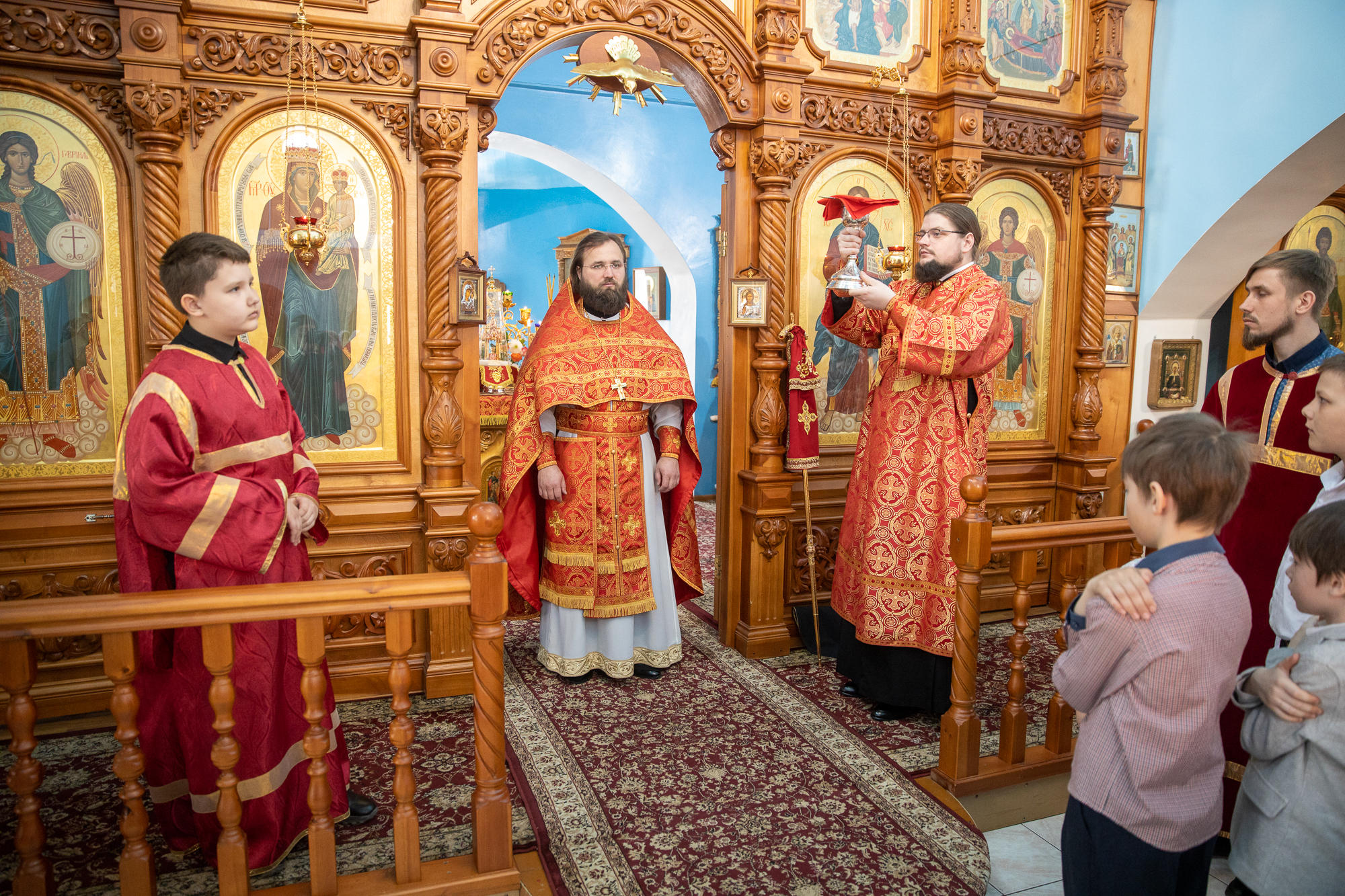 Его Высокопреосвященству сослужили: настоятель храма иерей Димитрий Галицкий, секретарь Ханты-Мансийской епархии игумен Антоний (Кирпичев), иерей Константин Полуян, диакон Даниил Матвеев.